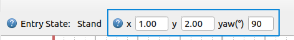 To support this each choreography sequence can be given a start position, which can be set in the Timeline Toolbar. (Right-click the yaw entry field to switch between radians and degrees).
